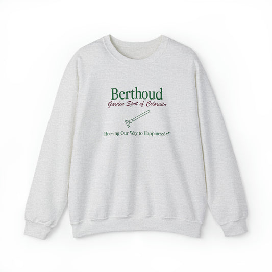 Berthoud 'Hoe-ing' Crewneck - Unisex Heavy Blend™ Crewneck Sweatshirt in White and Ash